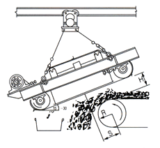 (2)非帶式電磁除鐵器:必須選擇電動行走小車 。以便電控自動吸、棄鐵。輕型特別是三吊點(diǎn)的除鐵器,一般選擇電動單軌單車吊掛。重型設(shè)四吊點(diǎn)的除鐵器可以選擇電動雙軌或單軌組合行走架。重型設(shè)三個(gè)吊點(diǎn)的可以選擇電動單軌組合行走架。